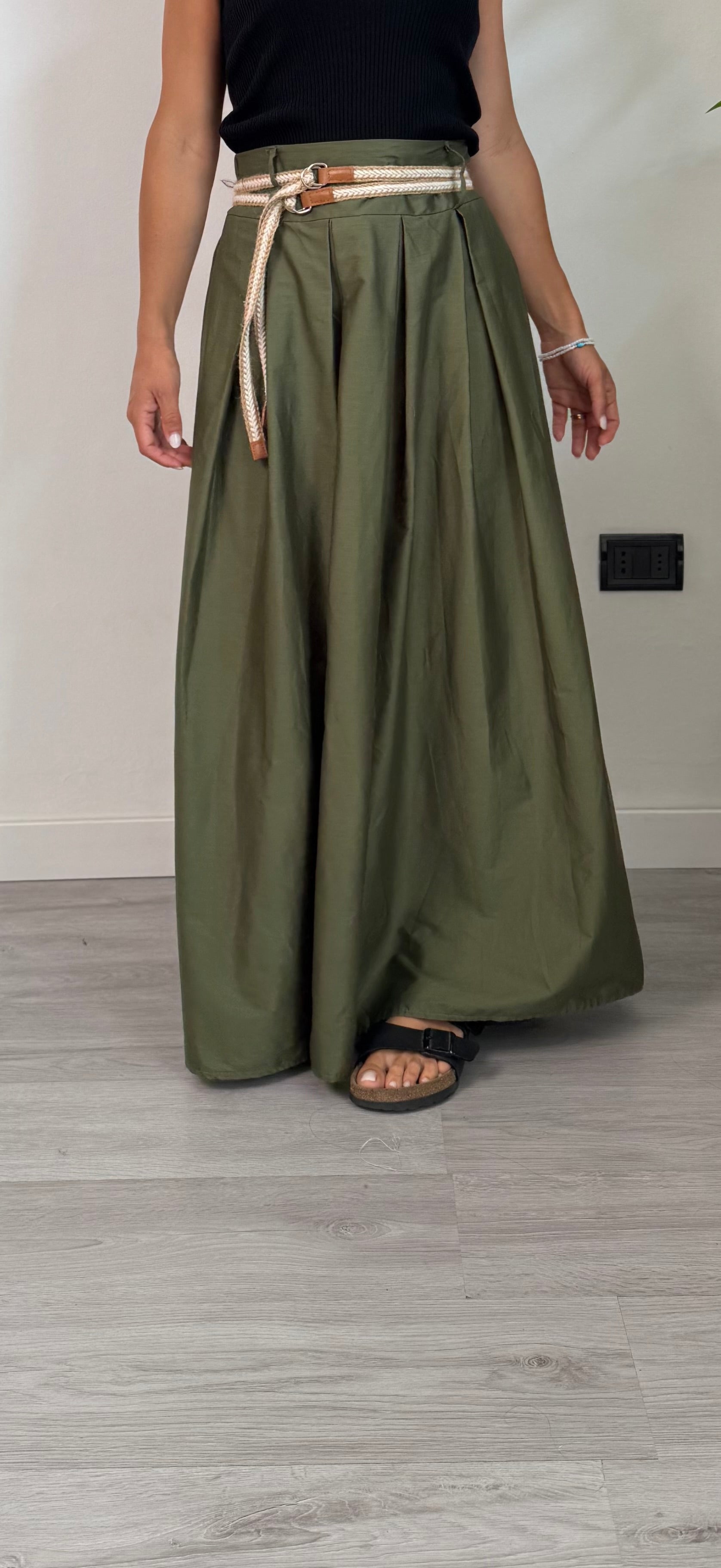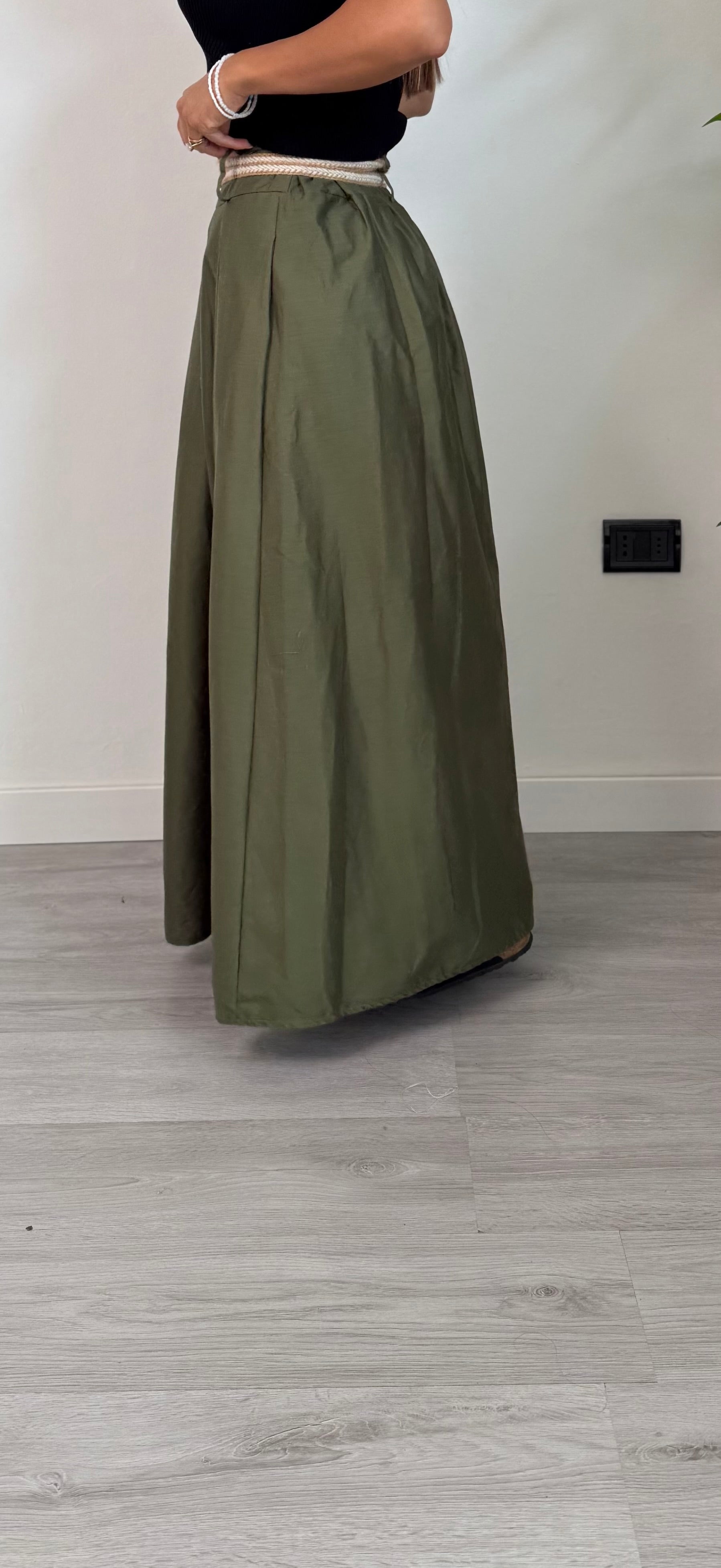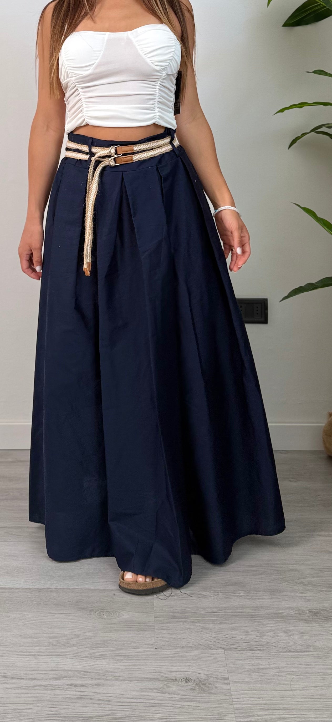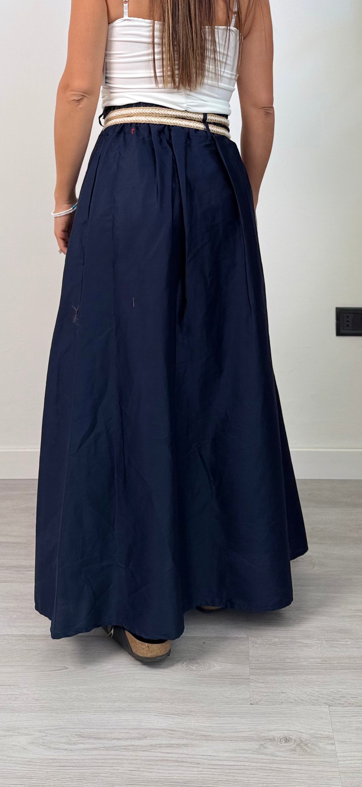 Gonna lunga molto larga, elastico in vita, con cintura in corda. consigliato fino ad una 46