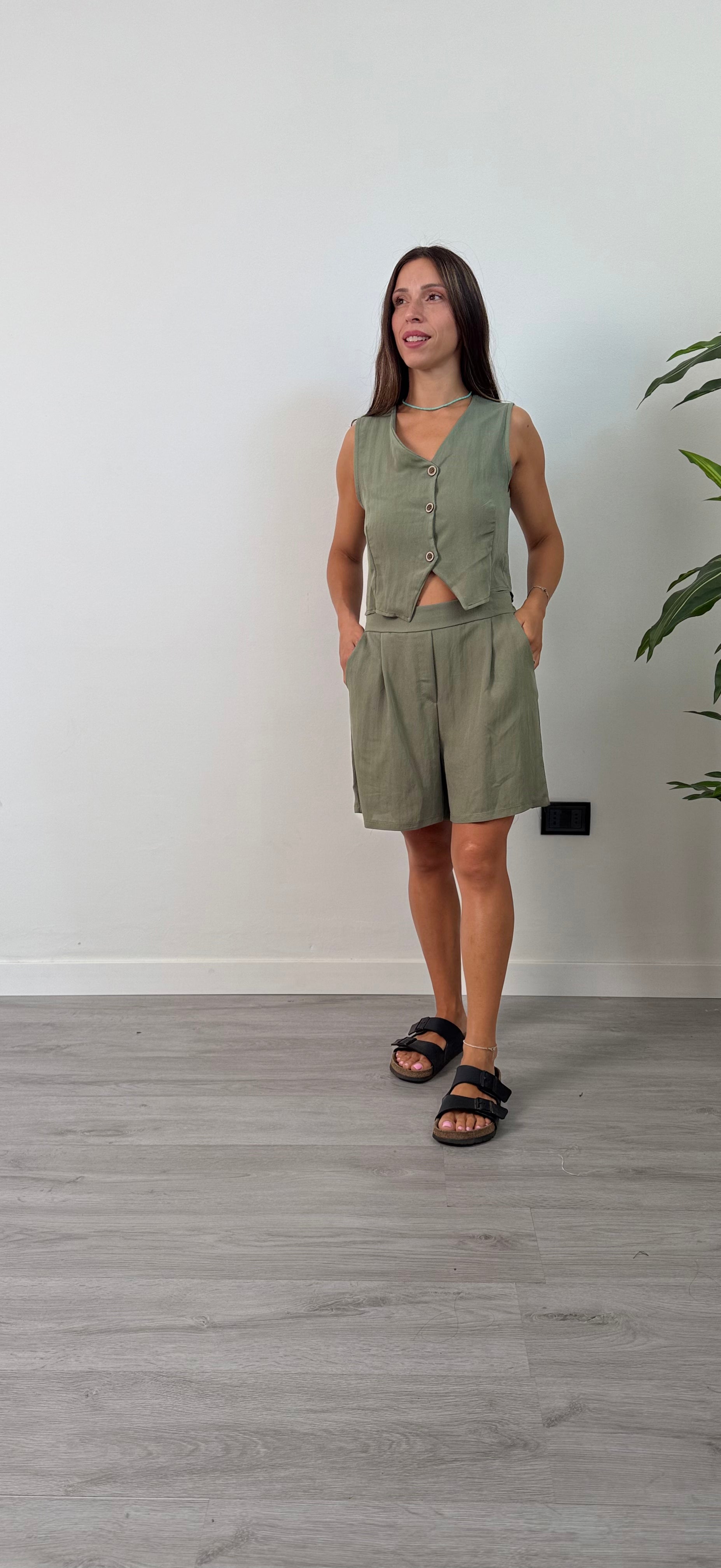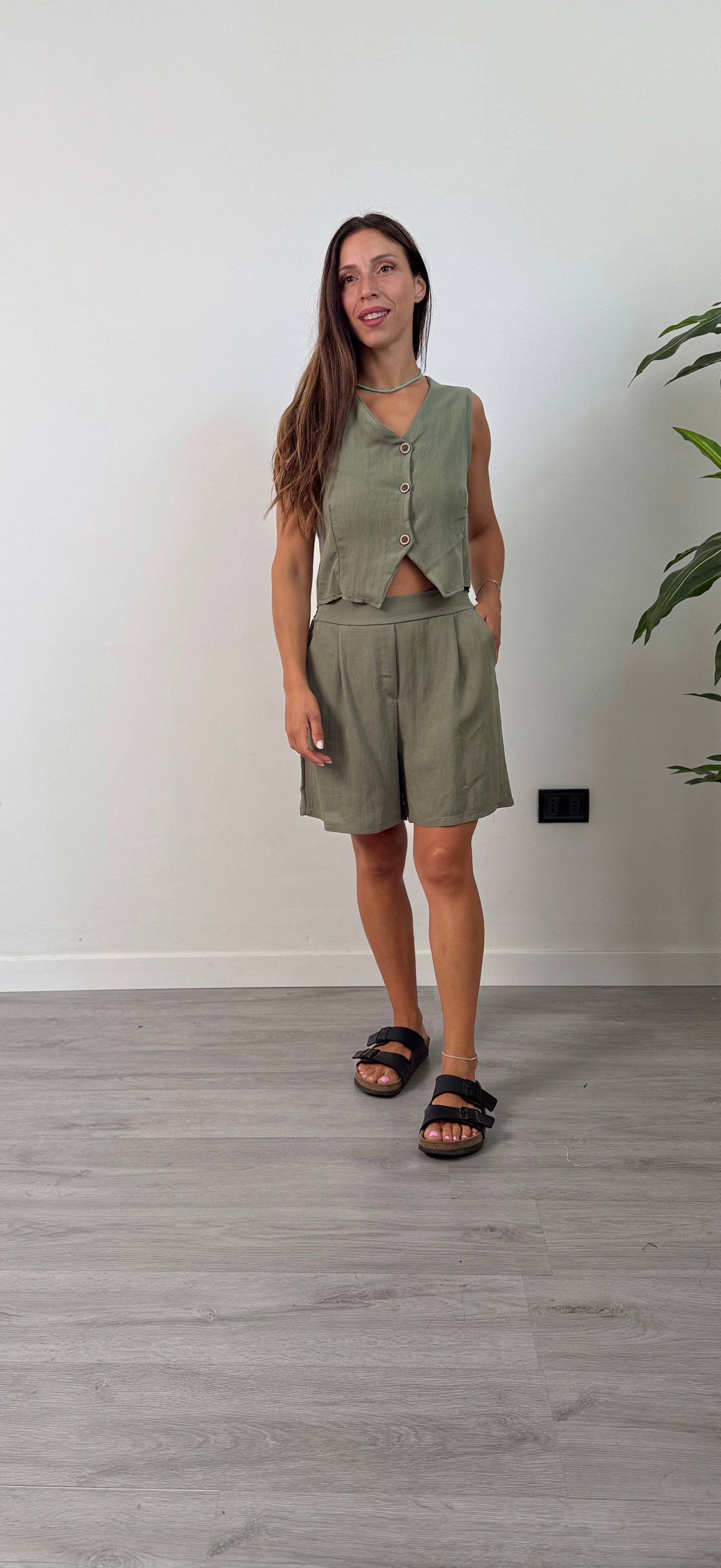 Coordinato due pezzi, gilet con abbottonatura sul davanti, Pantalone  tasche laterali e molla in vita elasticizzato Consigliato fino ad una tg 44/46