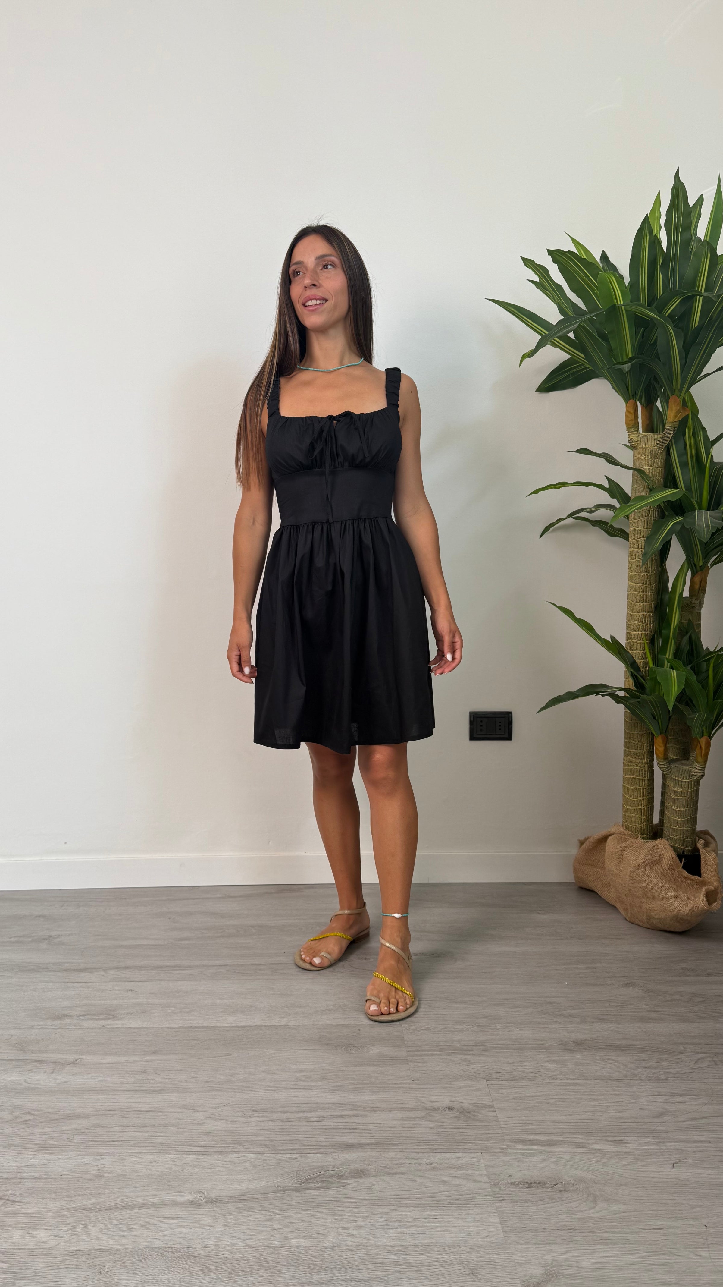 Abito fresco e comodo, con coppa preformata spalline elasticizzate , corpetto elasticizzato con fiocco, gonna ampia Consigliato fino ad una tg 44